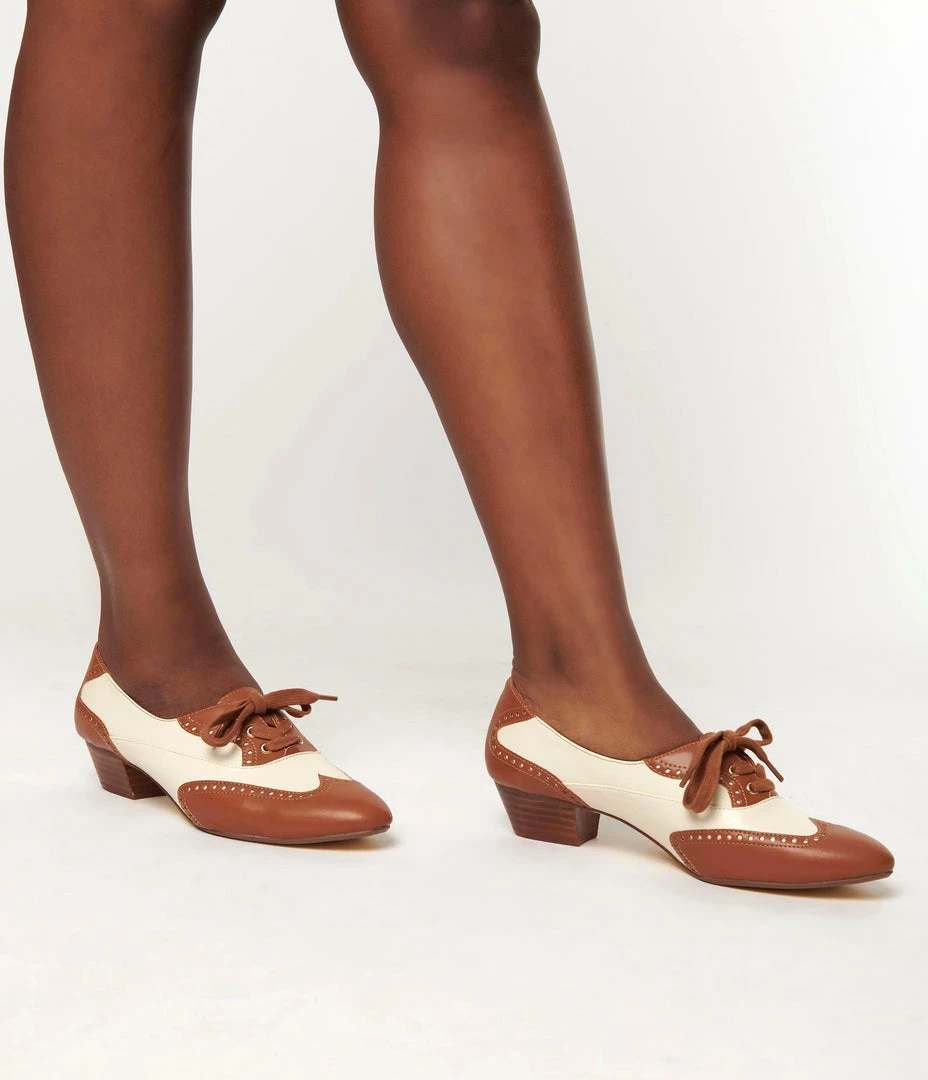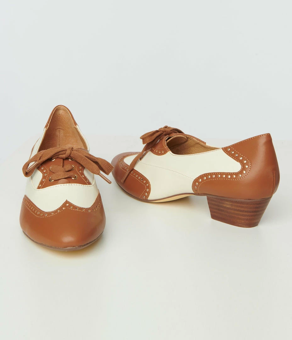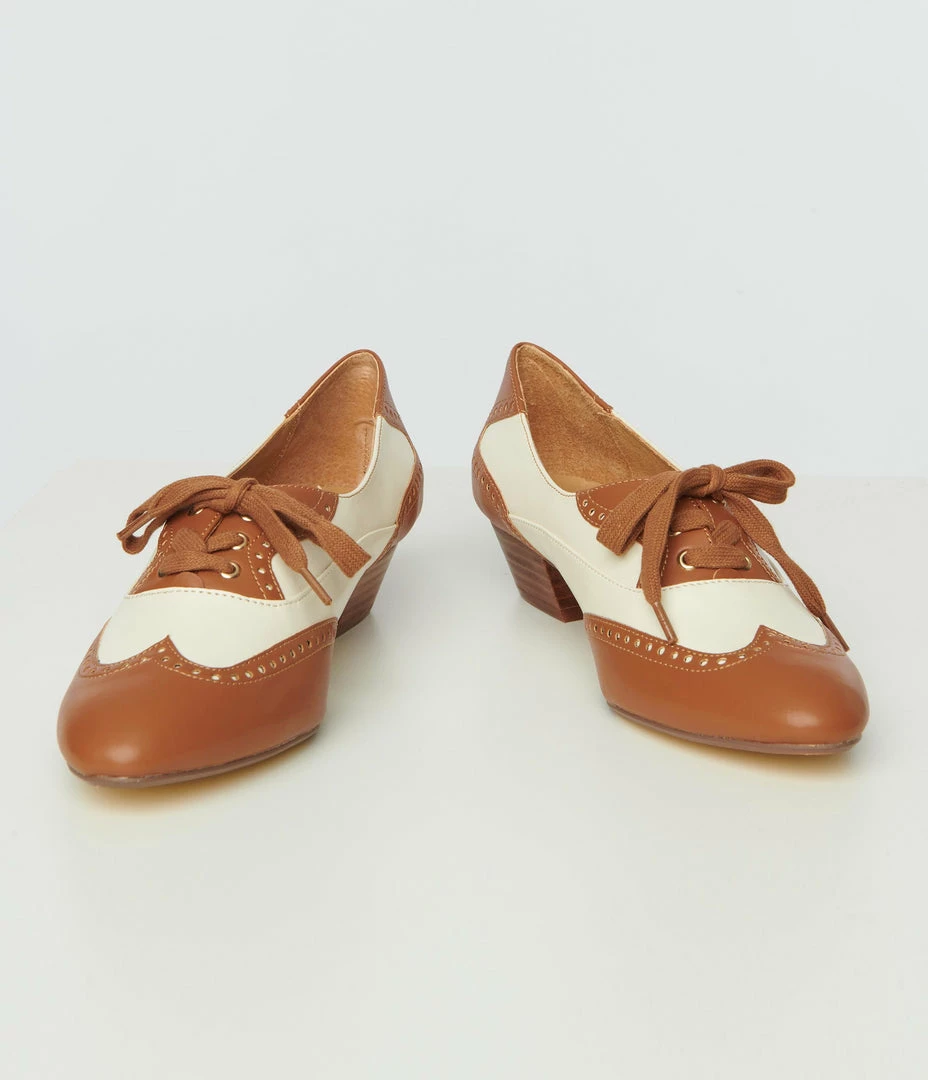 1950s Chelsea Crew Tan & Bone Saddle Shoe Heels