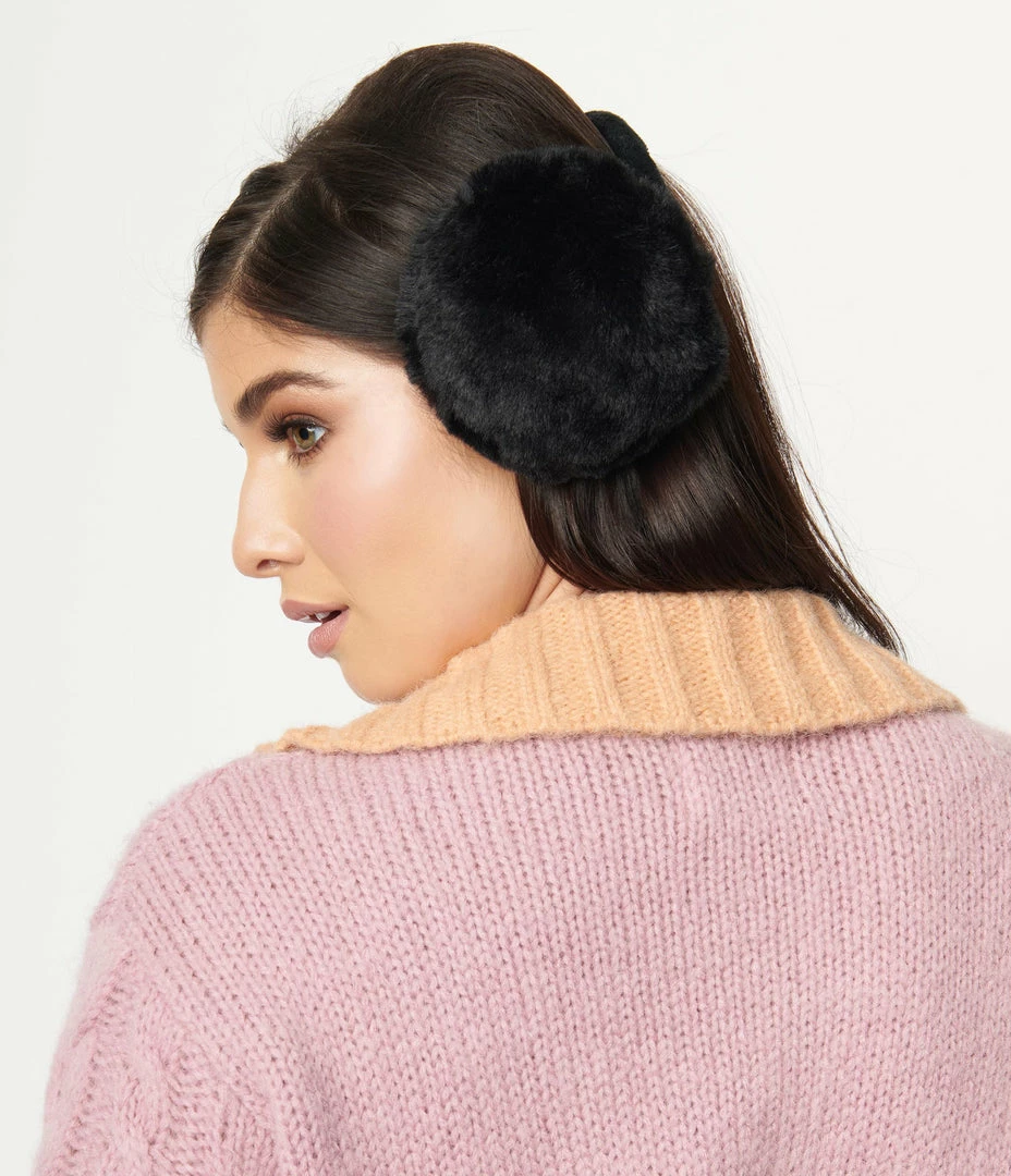 Keep your ears toasty warm with these adorable black faux fur earmuffs. Complete with fuzzy knit fabric over wire for adjustable wear!