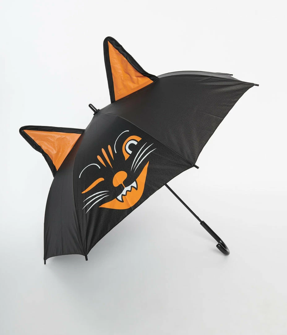 Make ‘em screams with this adorable umbrella, featuring an orange print of Jinx the cat’s winking face and fabulous pop up ears. Complete with a crook handle!