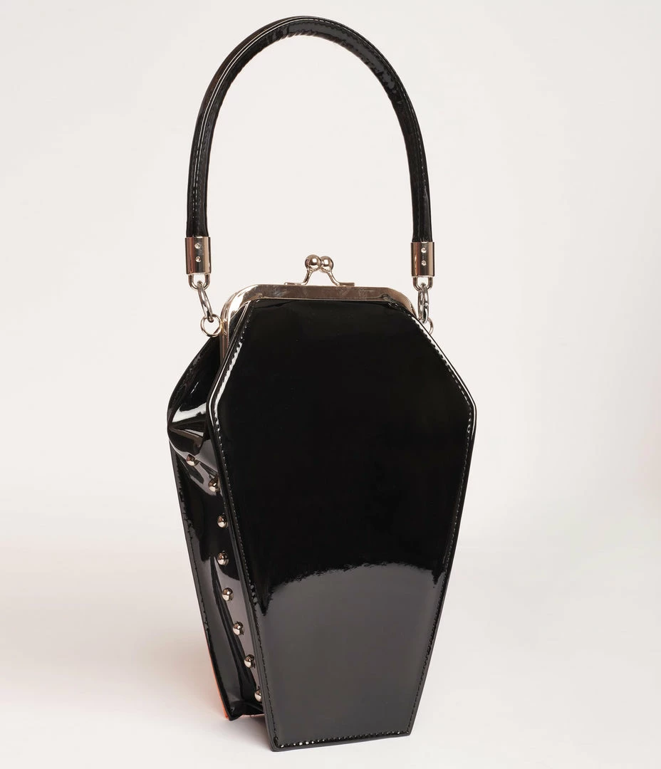 Be the first to review “Accessories Sourpuss Orange Sparkle Patent Coffin Purse” Cancel reply