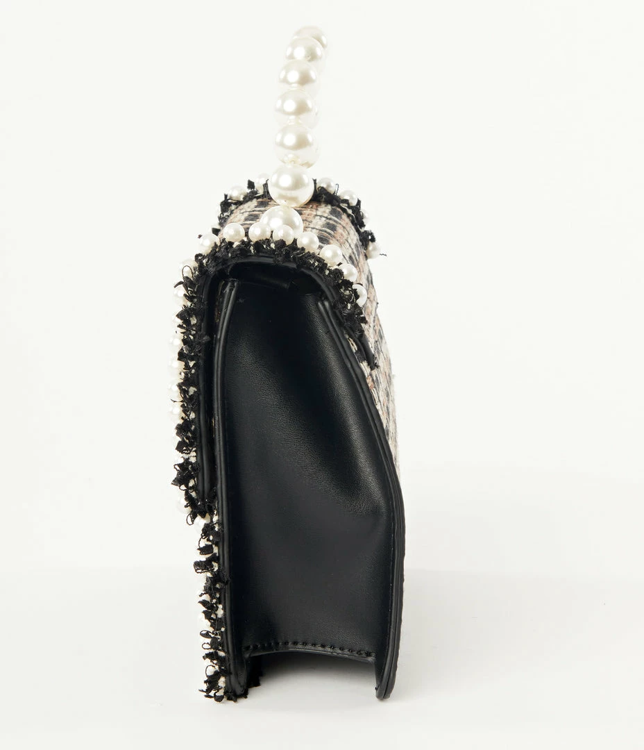 Anarchy Street 1950s Black & Gold Plaid & Faux Pearl Handbag