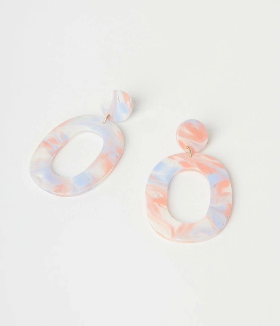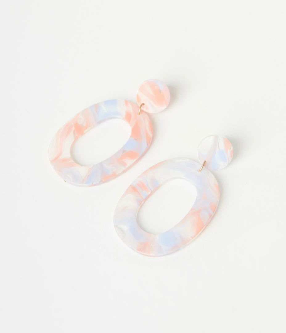 This chic pair of earrings feature an oval hoop, crafted in acetate that swirls with pink and blue colors. Secured with post backs!