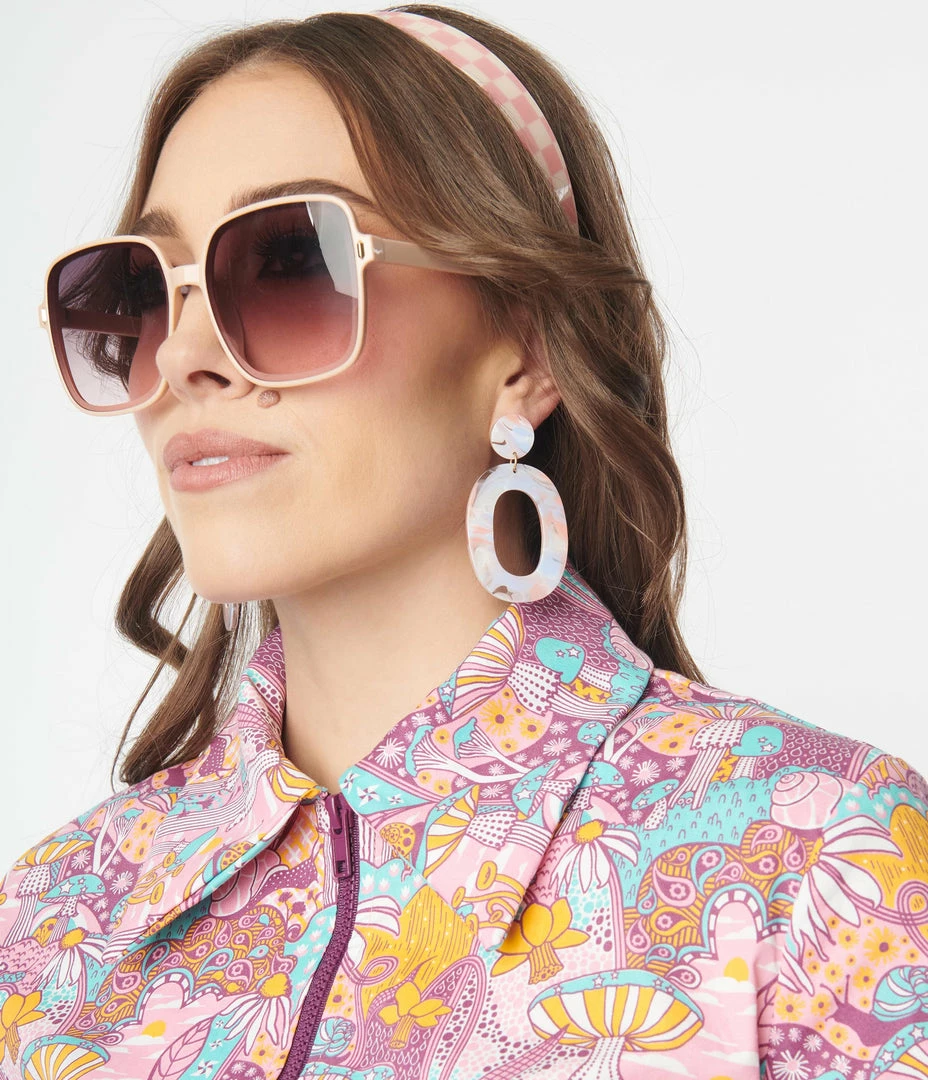Anarchy Street 1960s Pink & Blue Marble Oval Hoop Earring