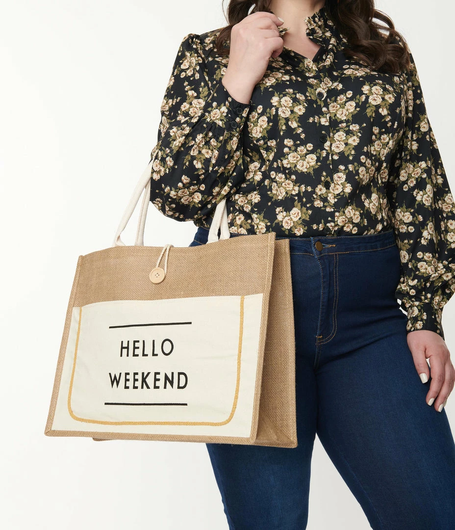 Anarchy Street Brown & White Hello Weekend Tote Bag