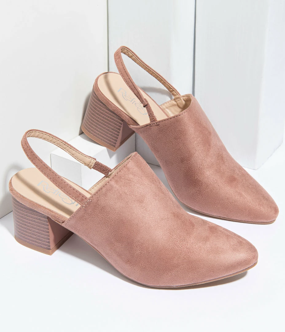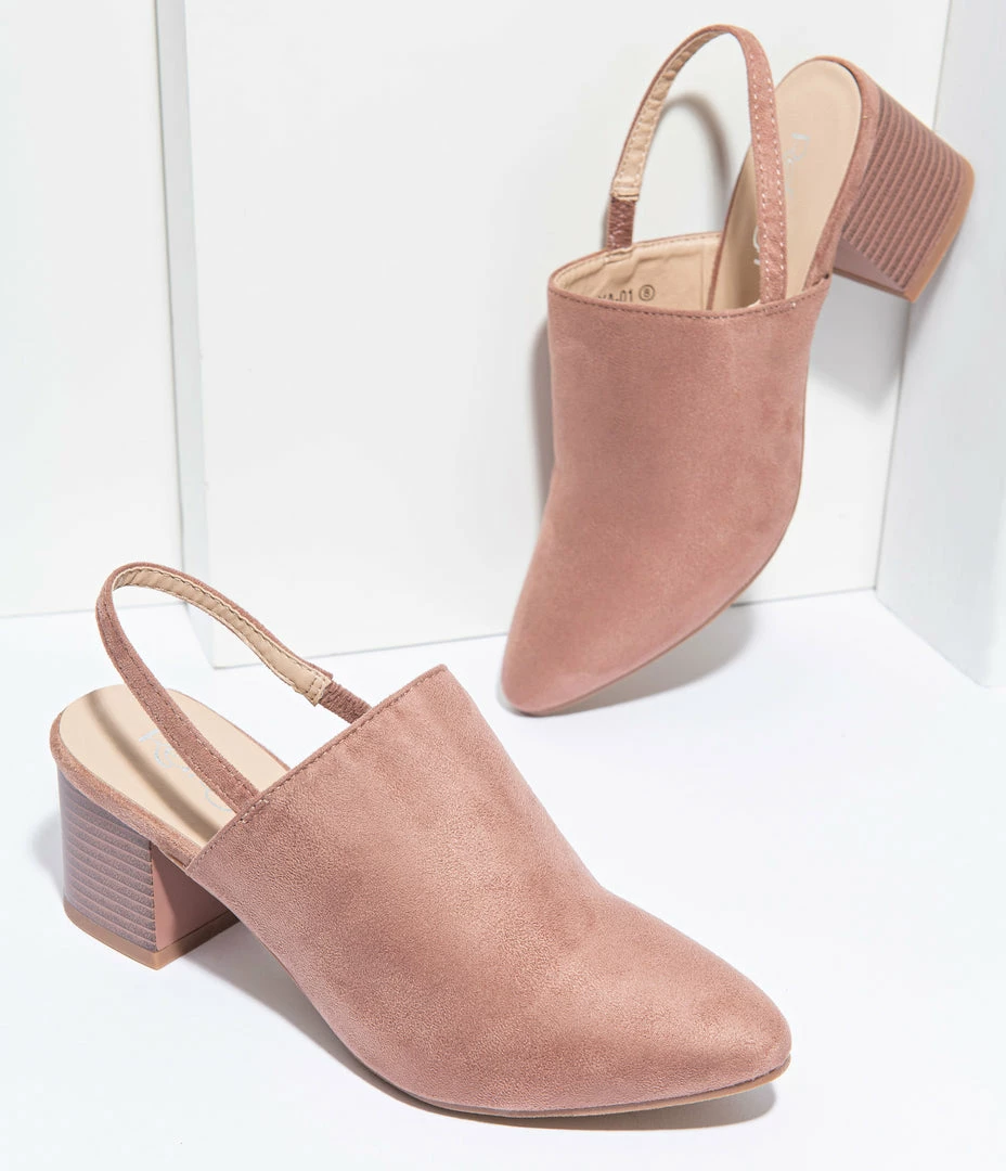 Appleblossom 1960s Retro Style Mauve Suede Slingback Heels
