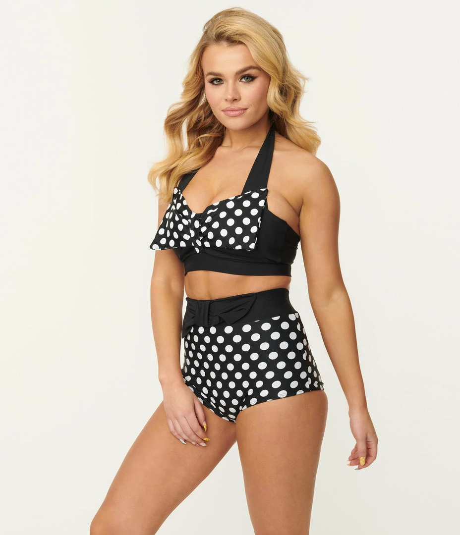 Attempt Inc. (Pinky Pinups) Vintage Style Black & White Polka Dot Swim Bottom Swimwear