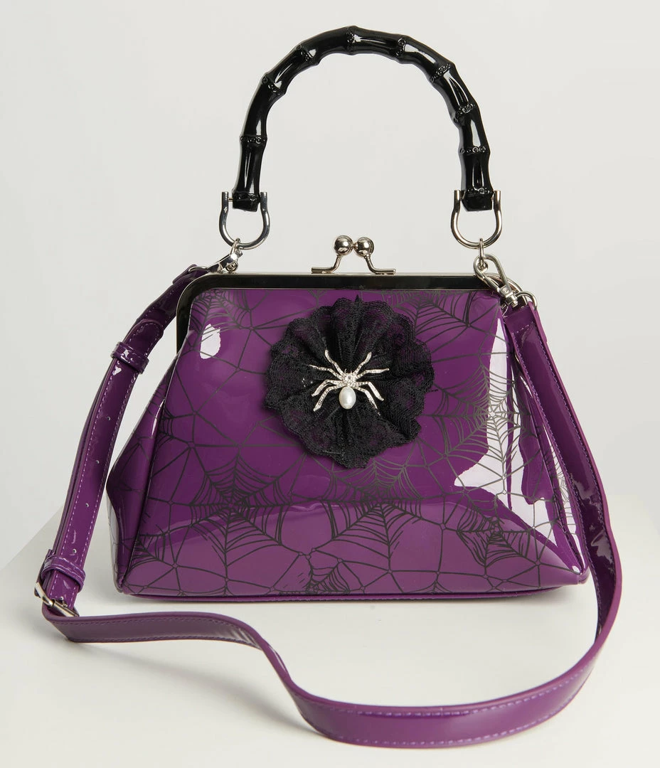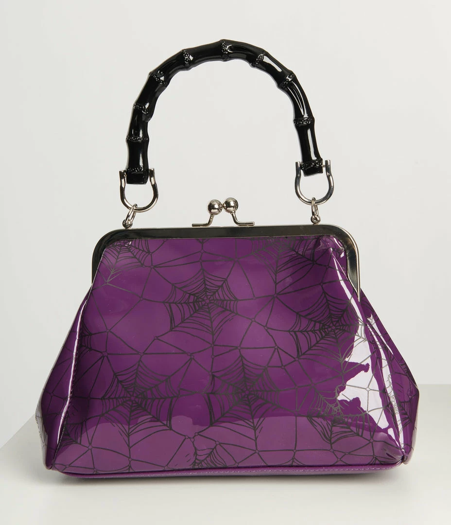 Banned Apparel Inc. Purple Patent Leatherette Spiderweb Handbag