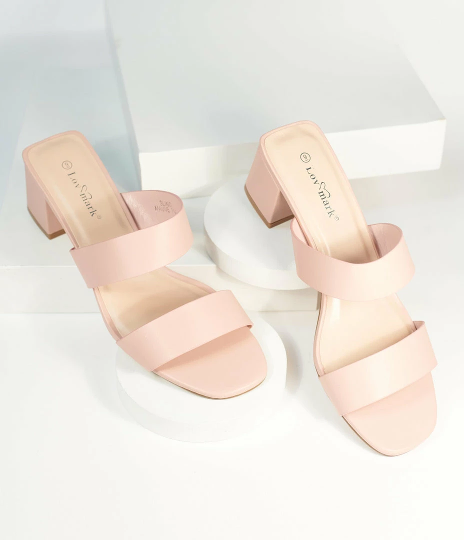 Belissima Pink Slip On Heel Sandals 1970s