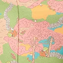 An eye-catching pair of plus size pants crafted in a stretch knit that features a scenic print of a park with a guitar playing frogman. The flared legs are secured with an elastic waistband.