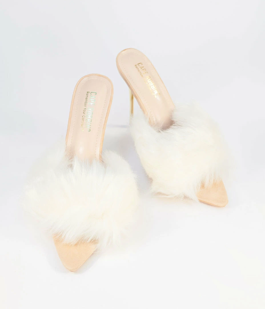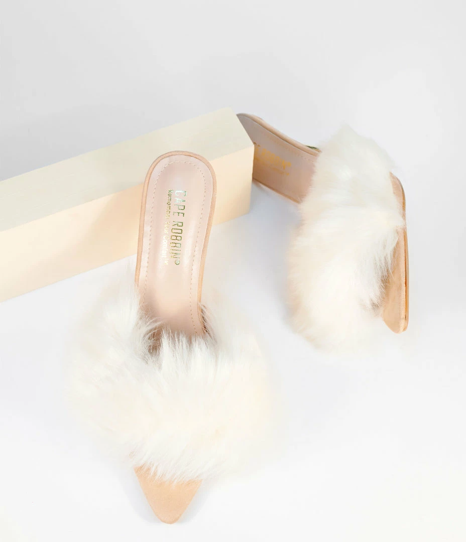 Cape Robbin Ivory Fur Stiletto Mule Heels 1950s