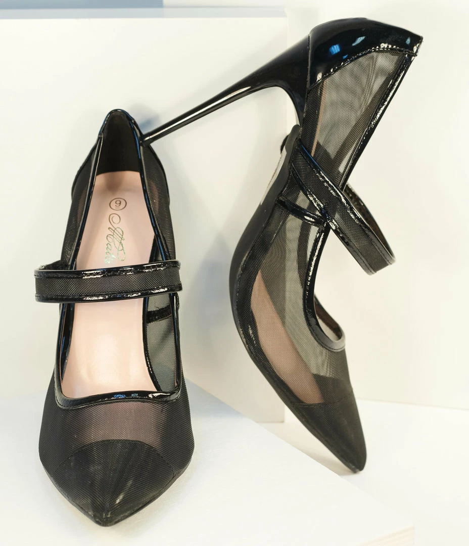 CHICPIER Black Mesh Stiletto Heels 1970s