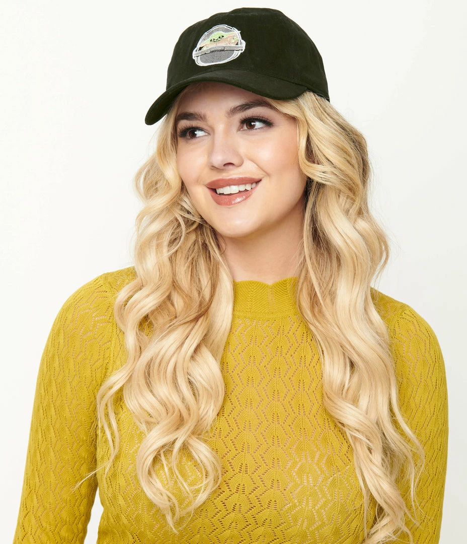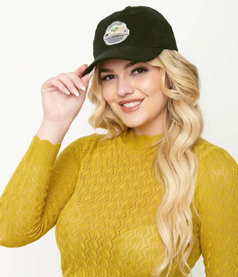 The force is strong with this one! This fabulous black cotton dad cap comes in a classic 6 panel style and pre-curved bill. An adjustable strap allows for a secure fit while an adorable embroidered patch of The Child from The Mandalorian sits on the front.