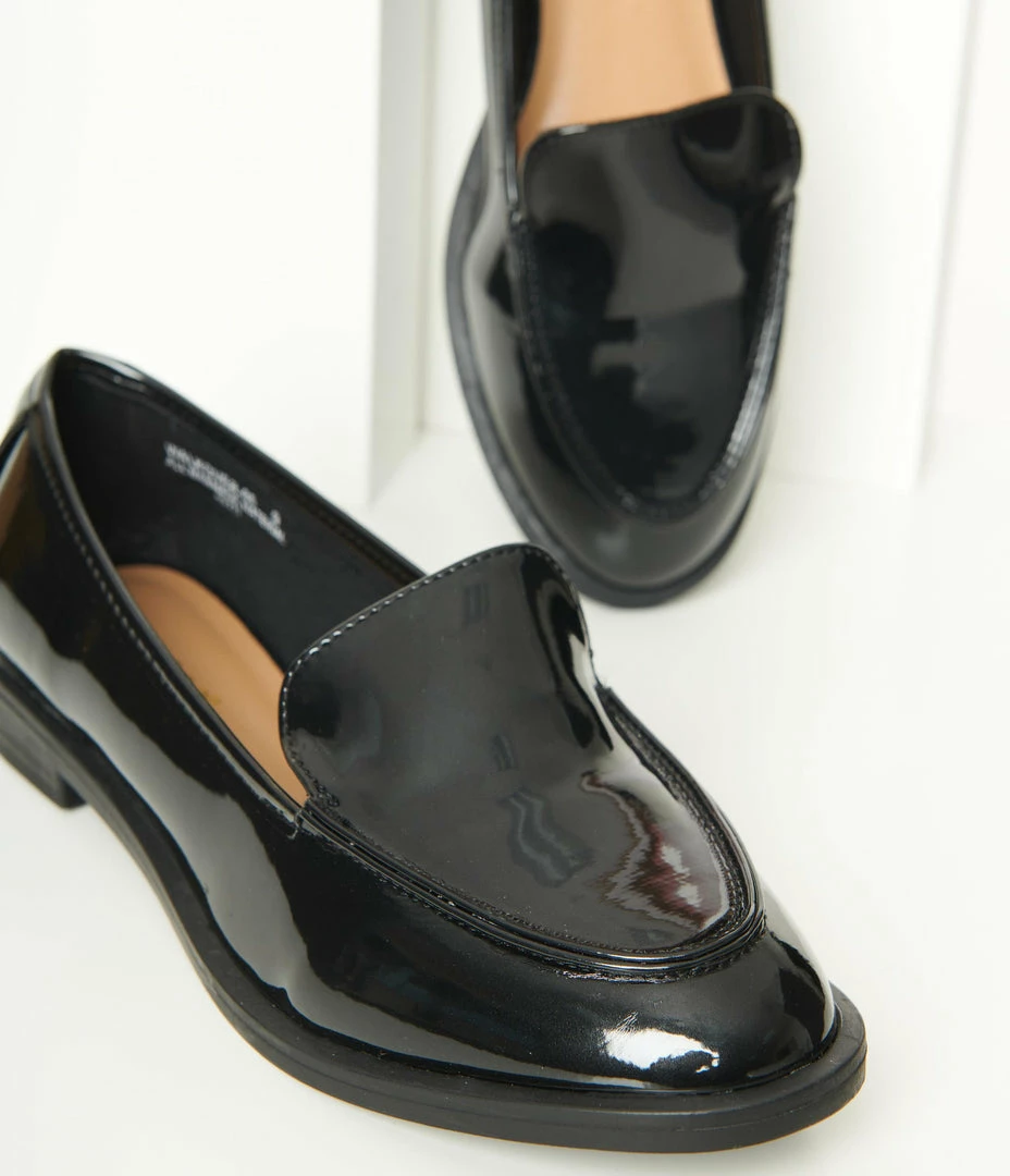 December Shoes Vintage Style Black Patent Leatherette Loafers