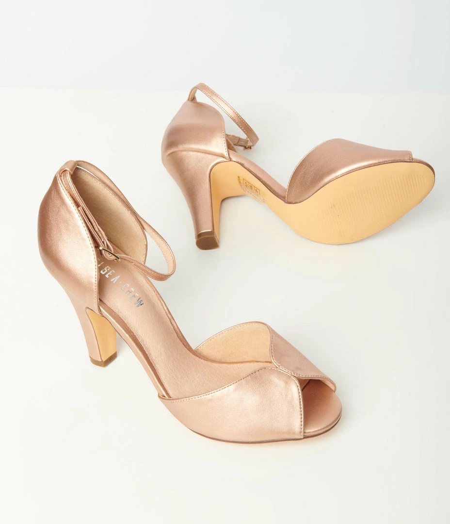 Demfon International (Chelsea Crew) Chelsea Crew Rose Gold Leatherette Peep Toe Pumps