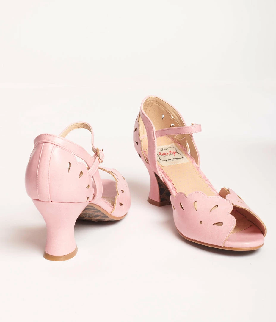 Ellie Shoes Bettie Page Pink Leatherette Cut Out Julia Heels