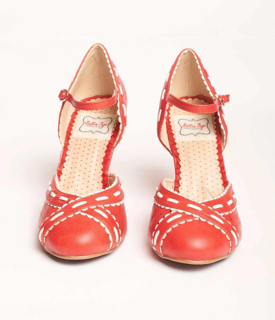 Ellie Shoes Bettie Page Red & White Leatherette Sidney Heels