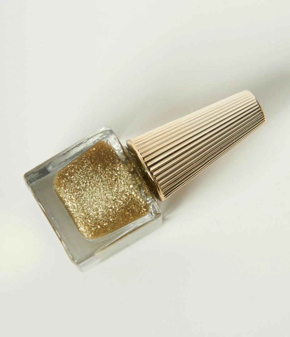 Wear it sheer or build it up, this gorgeous nail polish features golden glitter throughout!