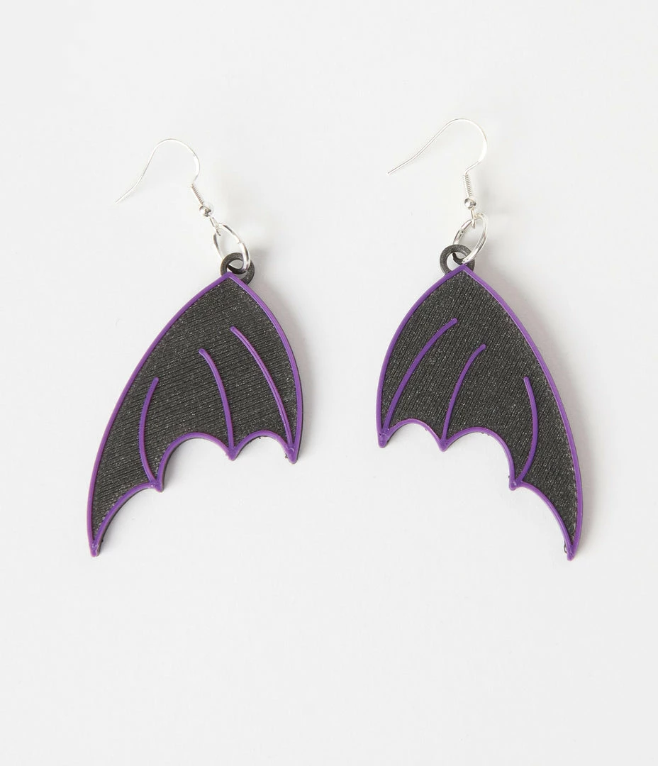 Faire (Printy Vibes) Accessories Black & Purple Batwing Drop Earrings