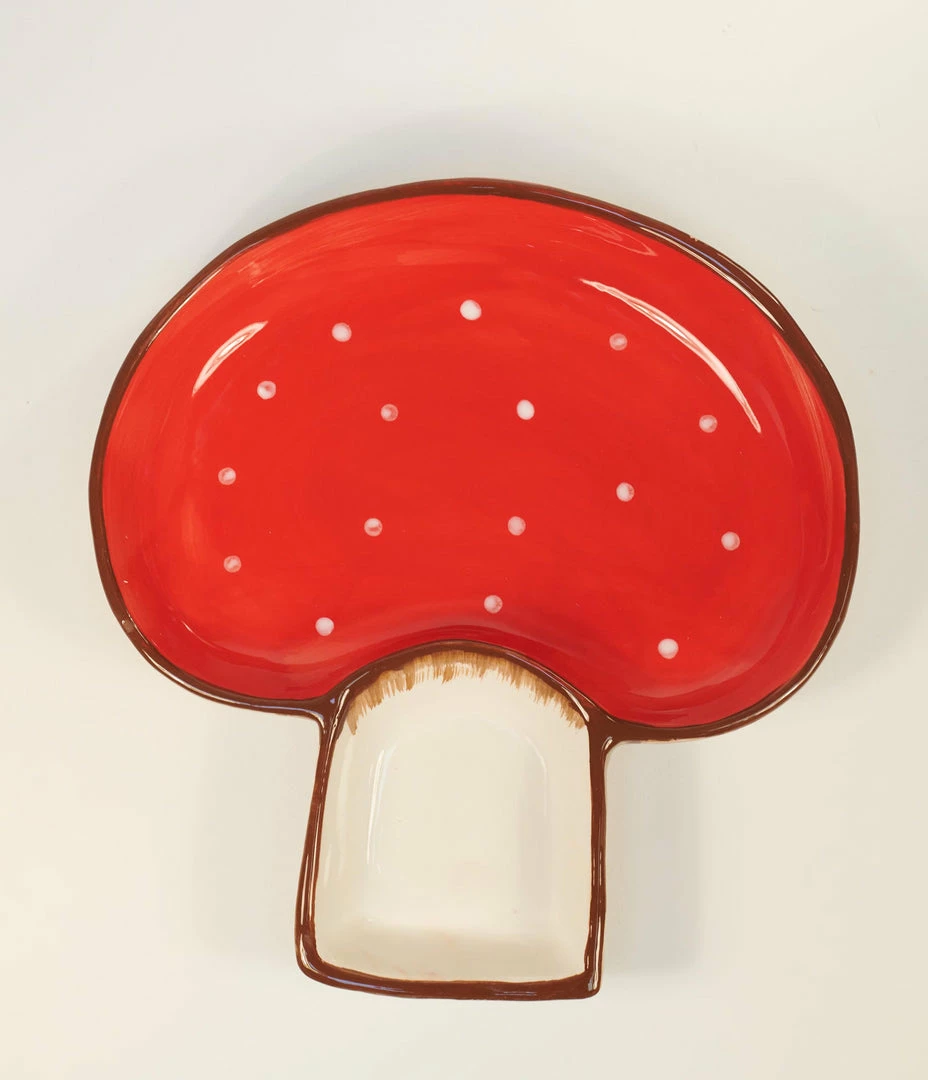 This fungi is perfect for all of your favorite snack duos! Cast in ceramic and finished with a glossy coat this delightful red and white mushroom shaped bowl is divided into two sections!