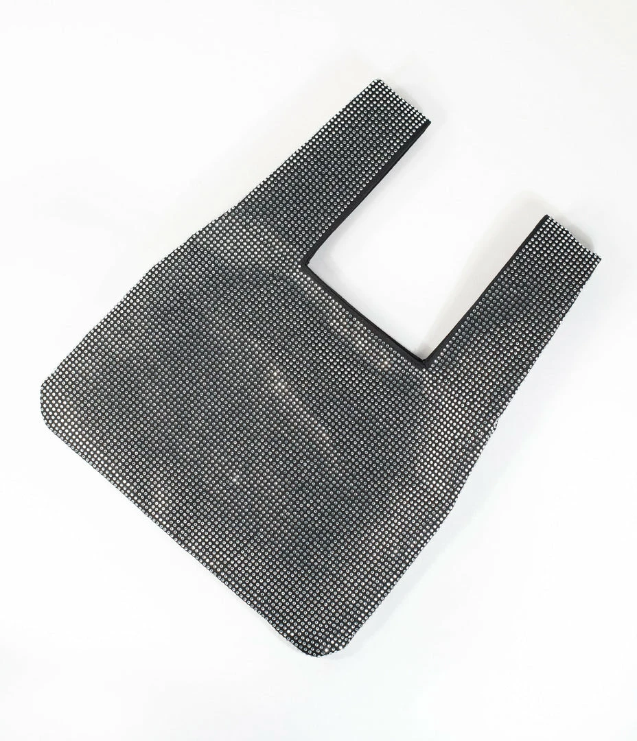 Bring a little bling with this radiant handbag, crafted in black fabric that dazzles with silver rhinestone throughout. The dual handles provide easy carry while the inner zipper pocket allows for organization!