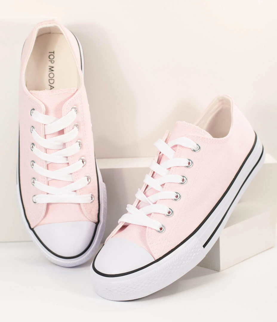 Fashion Emporio 1950s Light Pink Lace Up Canvas Sneakers