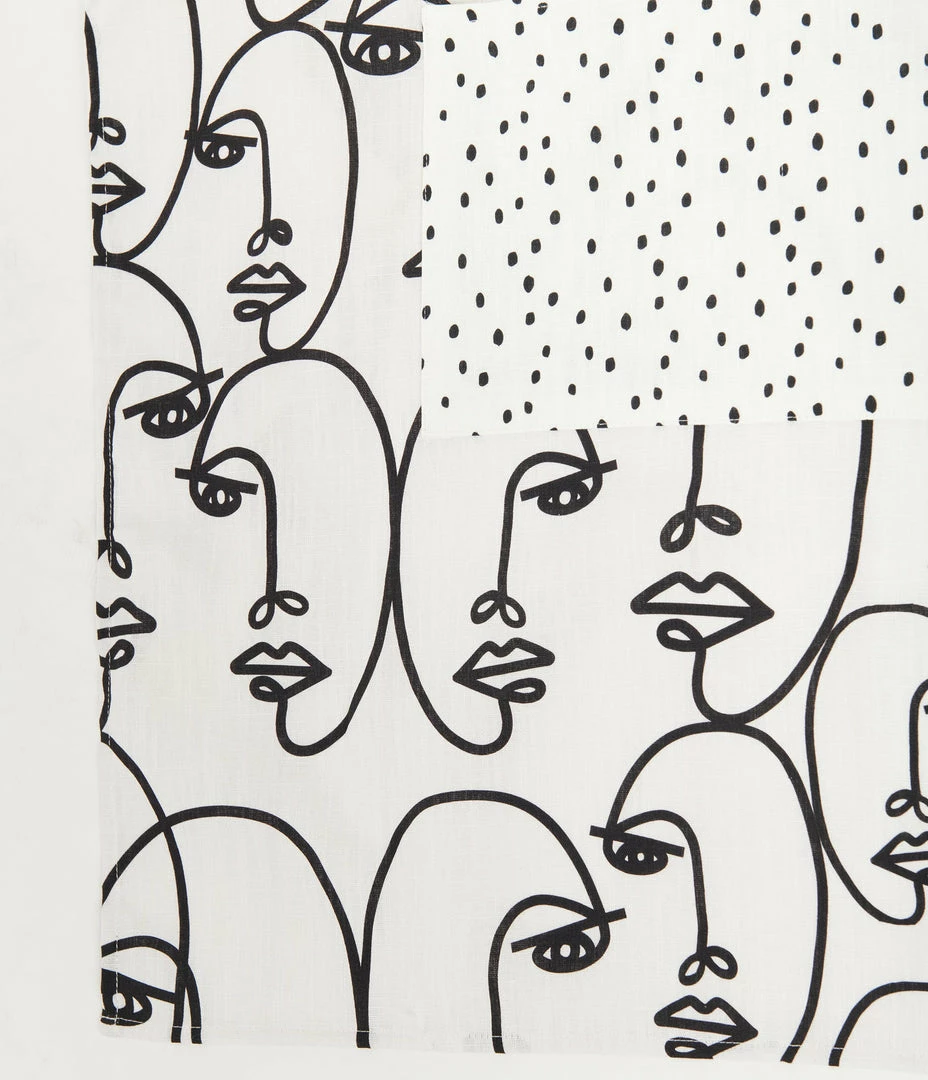 Come face to face with your cooking, dames! This chic cotton spring features a fabulous print of artistically designed faces throughout. The halter loop tops the adult sized apron while self tie at the waist lend secure coverage. Complete with black polka dotted twin pockets in the front for added convenience!