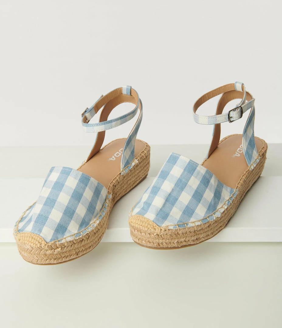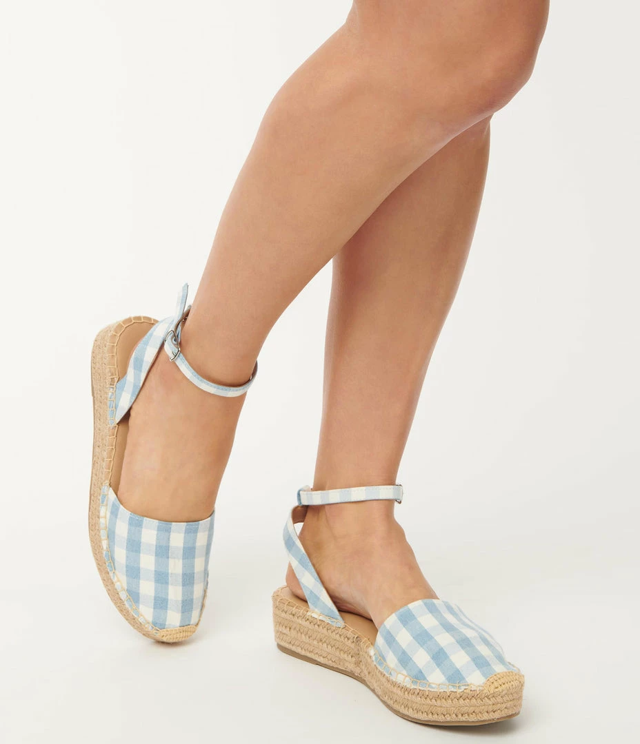 Fortune Dynamic Blue Gingham Platform Espadrille Sandal Shoes
