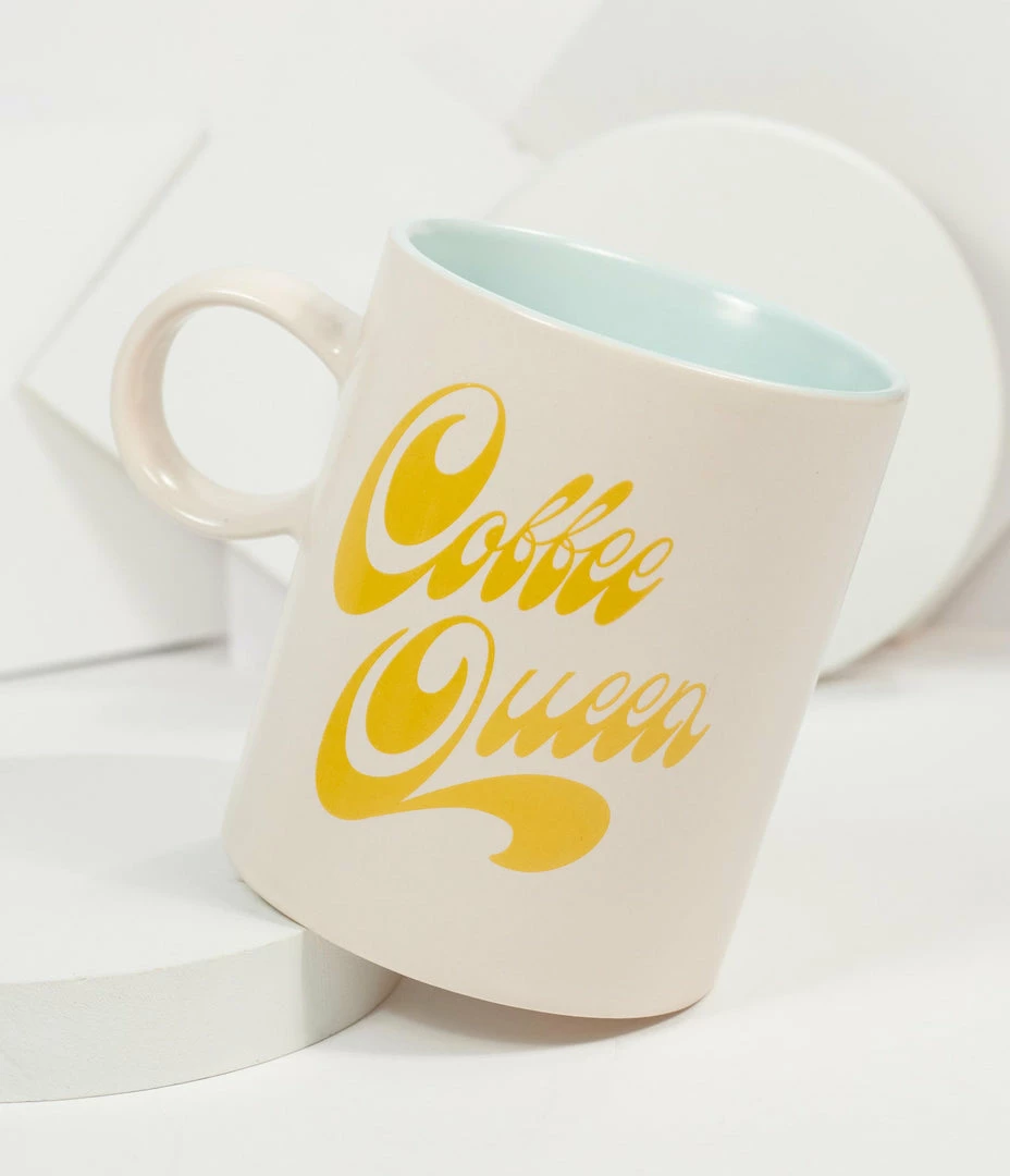 Long may caffeine reign! A darling ceramic mug in a matte glaze, this classic coffee mug features retro font that says, ‘Coffee Queen’.