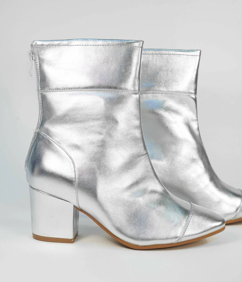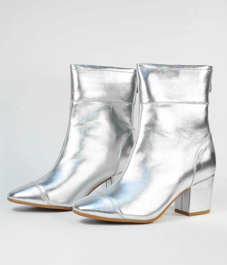 Glaze Shoes 1960s Silver Leatherette Mica Heel Booties