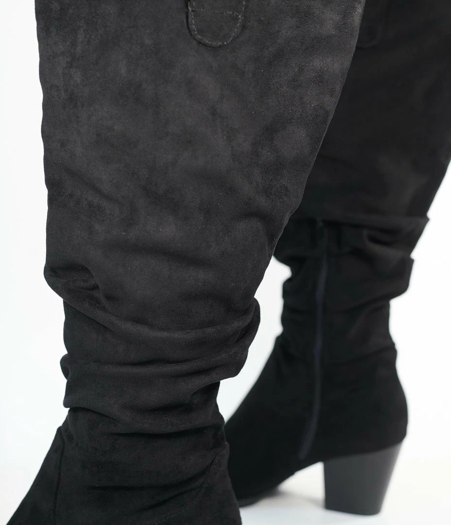 Joia Black Suede Knee-High Slouch Boots