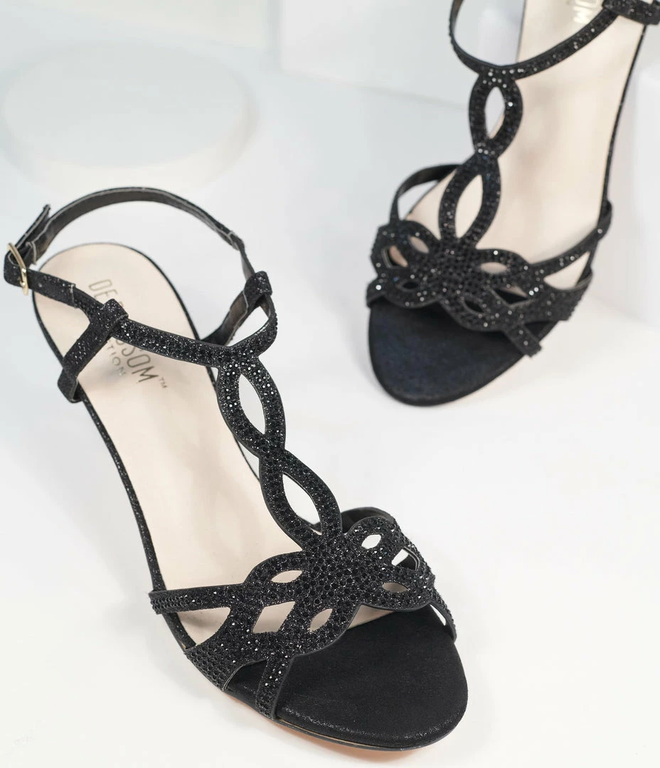 Joia Shoes Black Rhinestone Peep Toe Kitten Heels