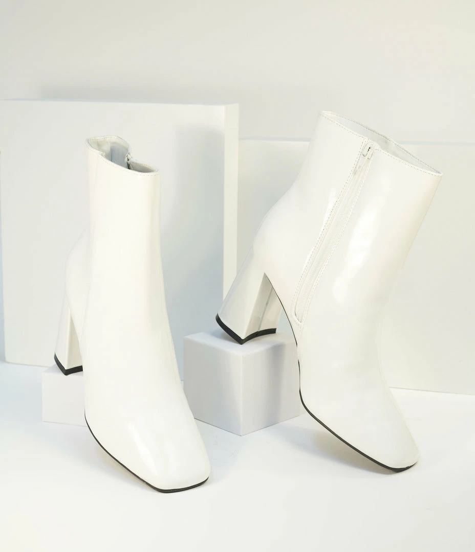 JP Original Corp. Shoes White Patent Leatherette Ankle Boots