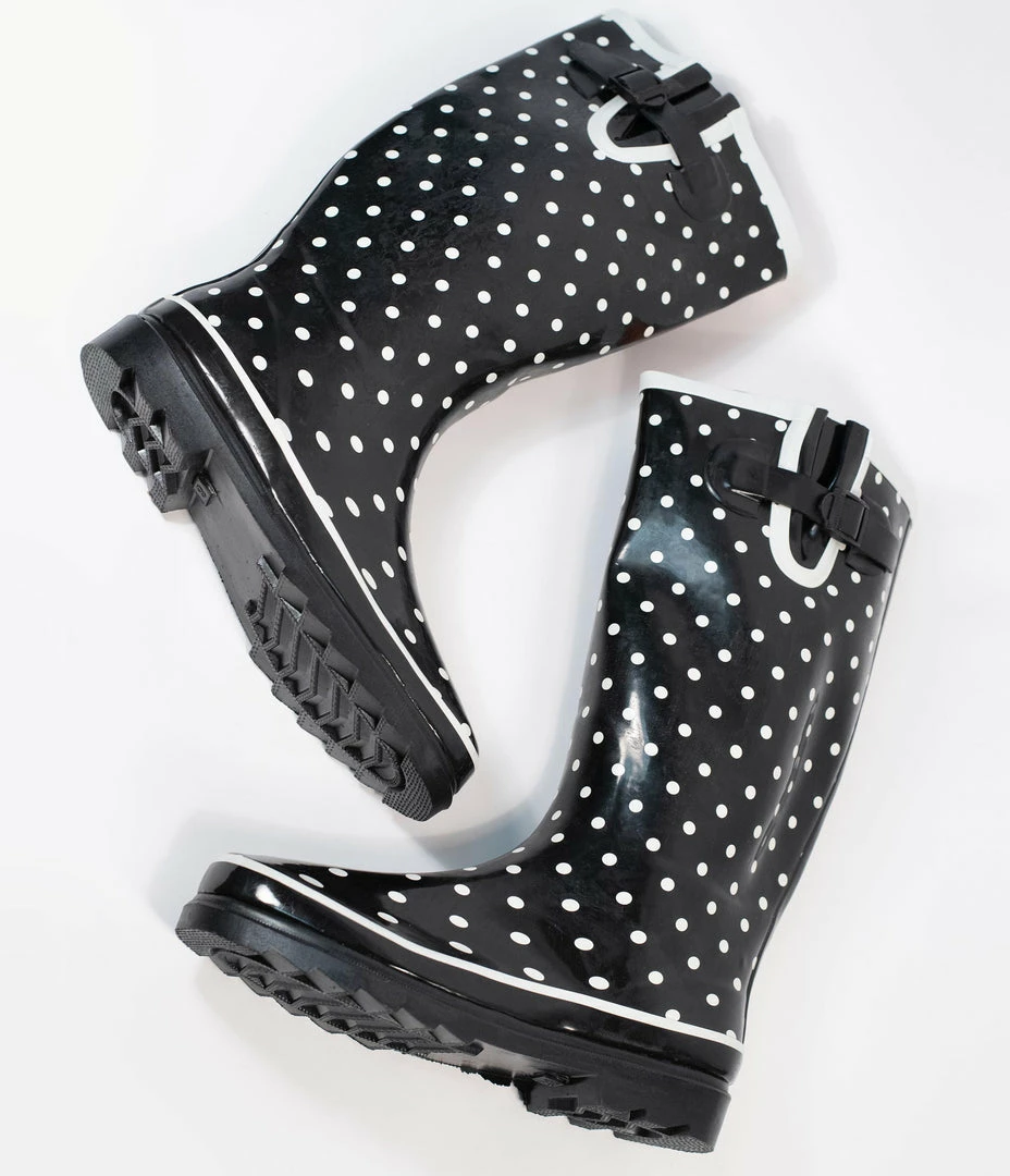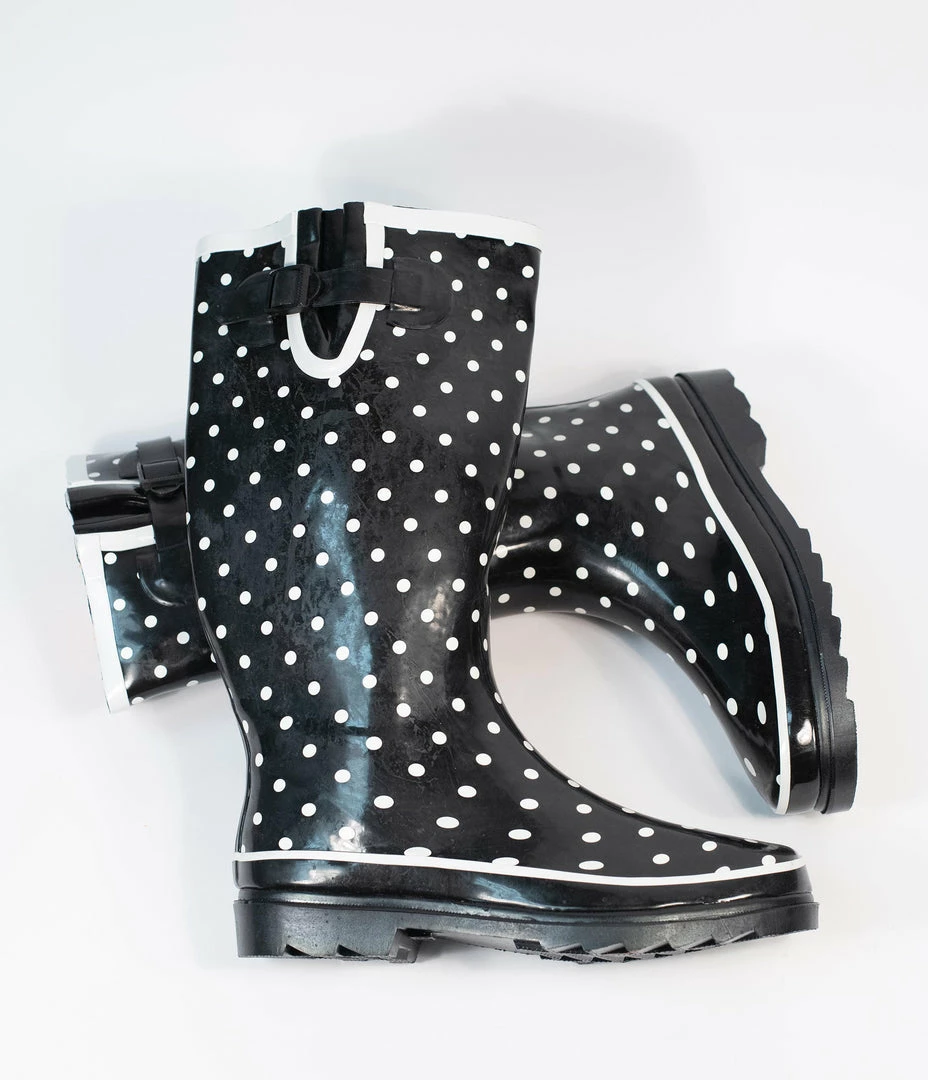Kara USA Black & White Polka Dots Rubber Rain Boots Shoes