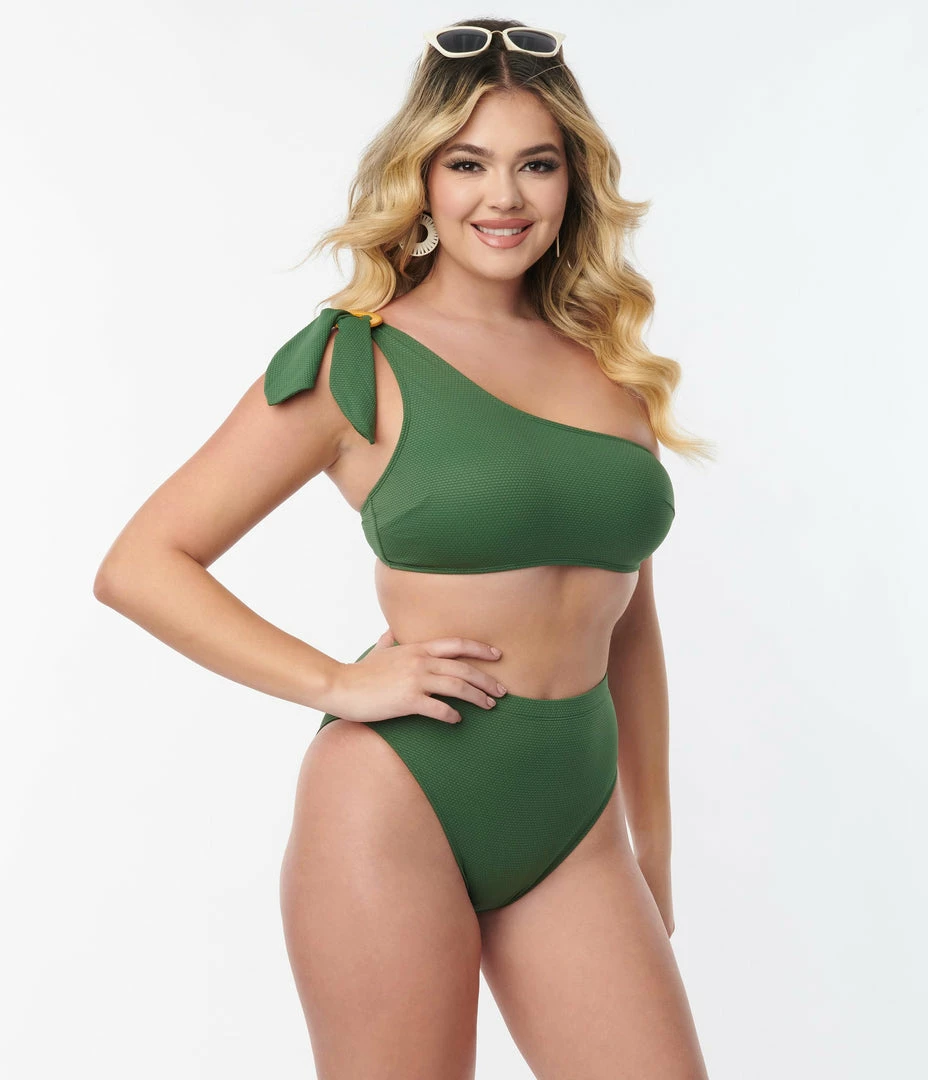 Kingdom & State Green Texture One Shoulder Swim Top Swimwear