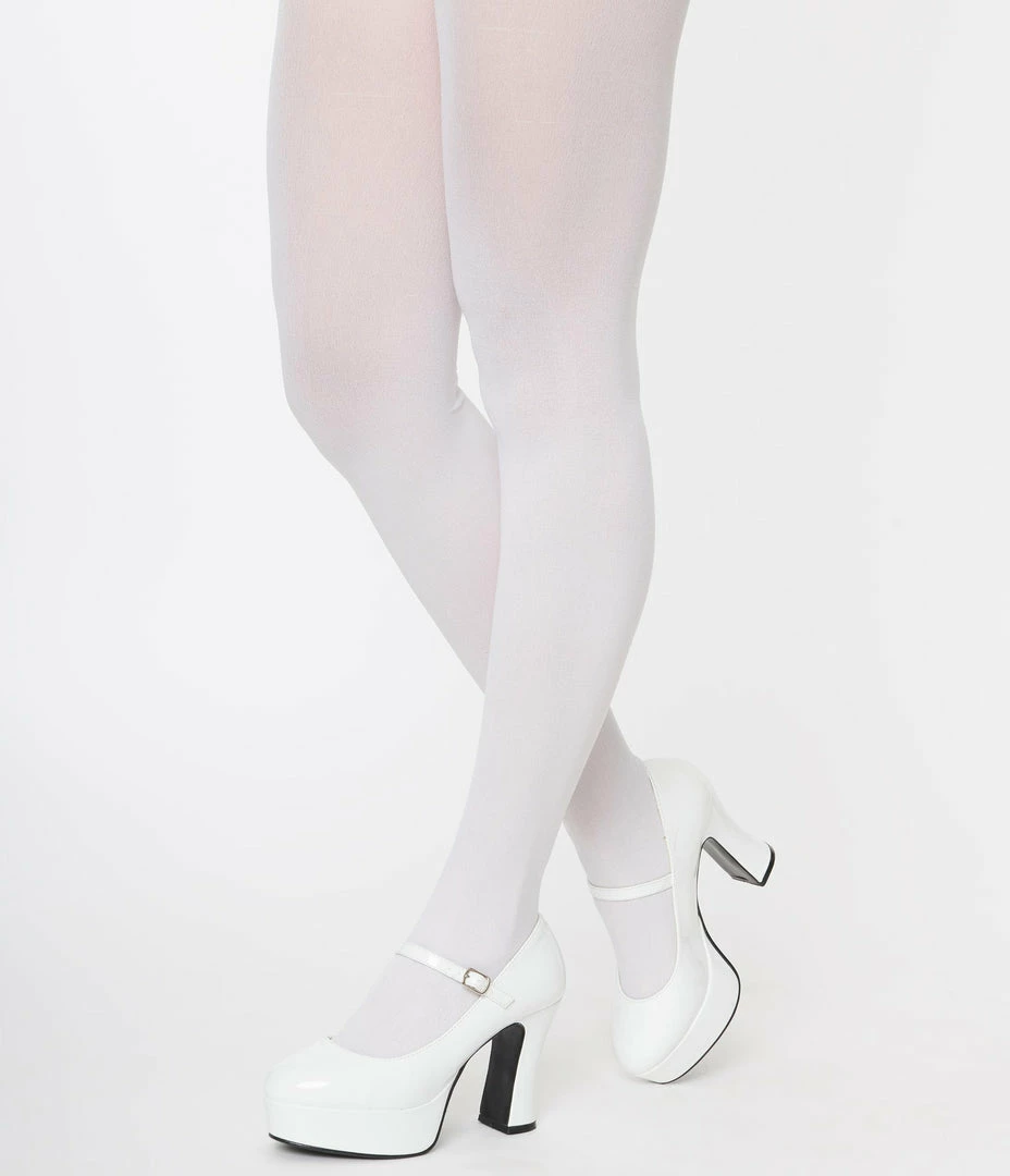 A divine accessory, darling! These angelic white tights are crafted in fabulous nylon. Grab a pair of wings and set out for adventure!