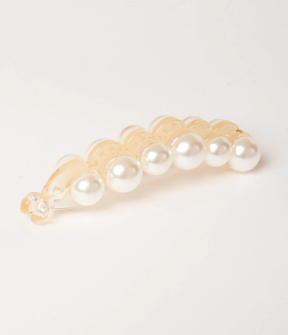 An elegant addition to your hair style, gleaming with faux ivory pearls through the banana style clip.