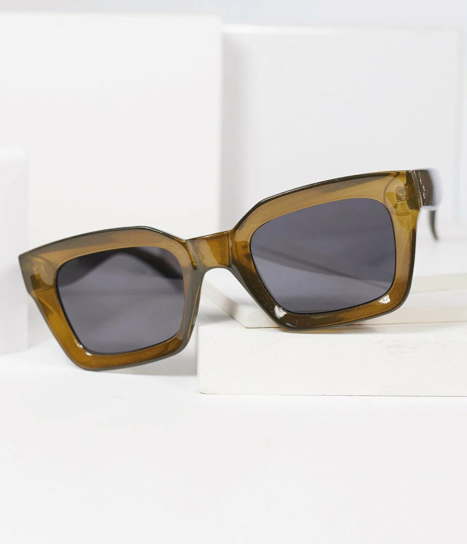 Stunning sunnies, darling! A sensational pair of retro style square sunglasses with dark tinted lenses that provide UV protection, topped off with gorgeous translucent brown frames. Created with molded nose pads and tapered arms for a comfortably sleek fit.