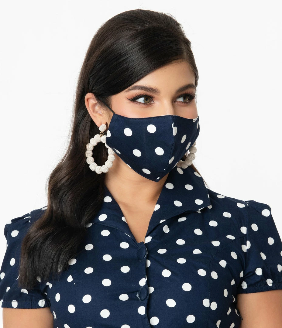 Magnolia Place Navy & White Polka Dot Print Face Mask Accessories