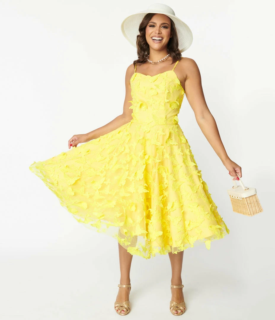 Magnolia Place Yellow Butterfly Ray Swing Dress