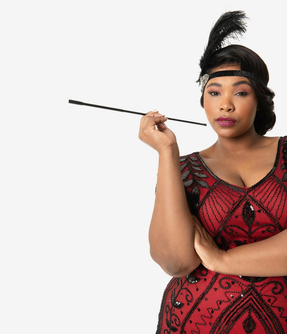 How about an eye-grabbing gizmo, dolls? The final vintage touch to your fabulous Gatsby costumes, this black flapper cigarette holder extends to 13 inches and is the last bit of sleek-easy you’ll need!<
