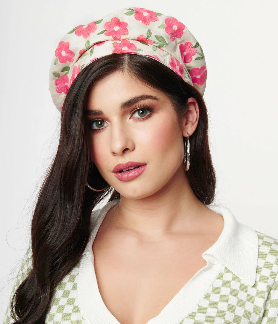 Mavin (Wild Pony Design Co) Cream & Pink Floral Beret