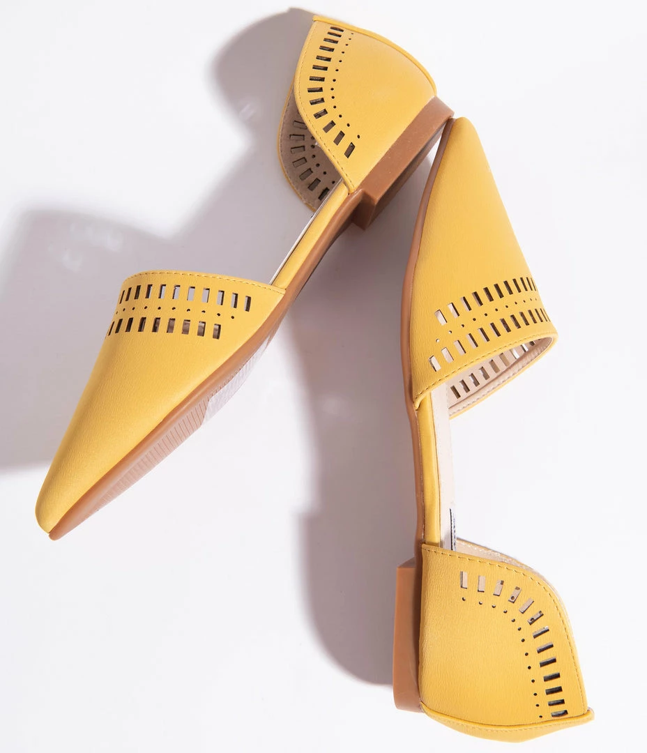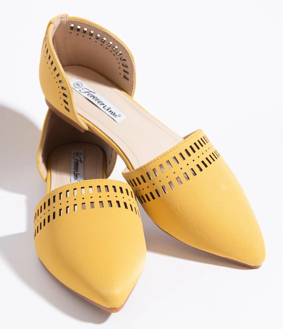 OUR LOVE LETTER INC Mustard Cutout Leatherette Pointed Toe Flats Shoes