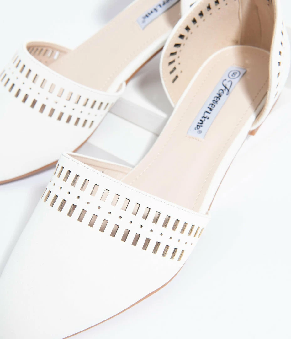OUR LOVE LETTER INC White Cutout Leatherette Pointed Toe Flats Shoes