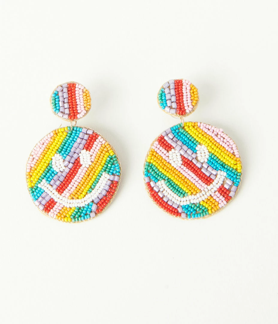 Pannee Accessories Beaded Rainbow Smiley Face Drop Earrings