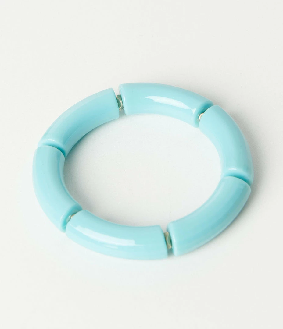 This charming blue stretch bracelet is cast in six acrylic beads on a stretch band. Slip it on and go!