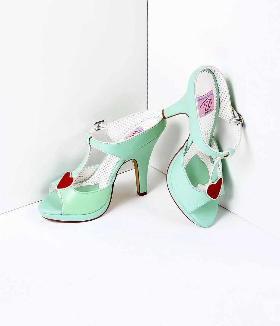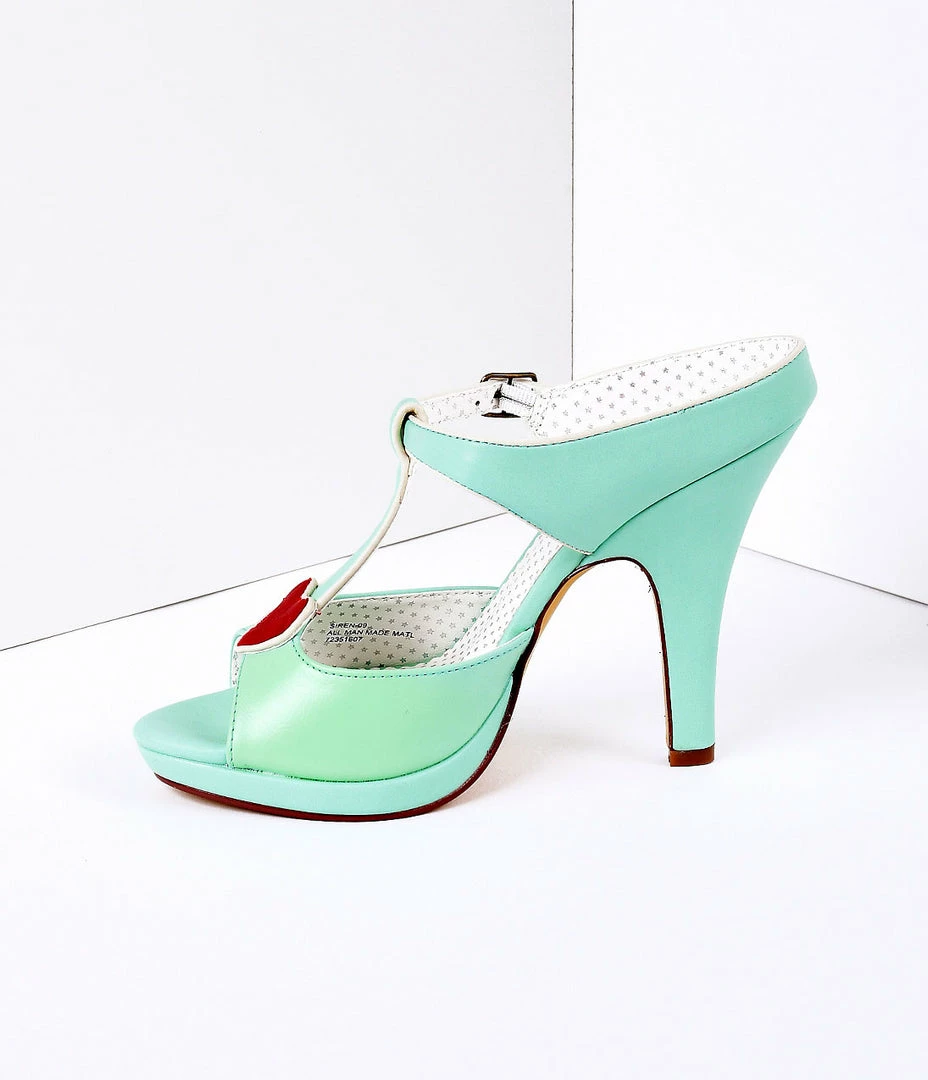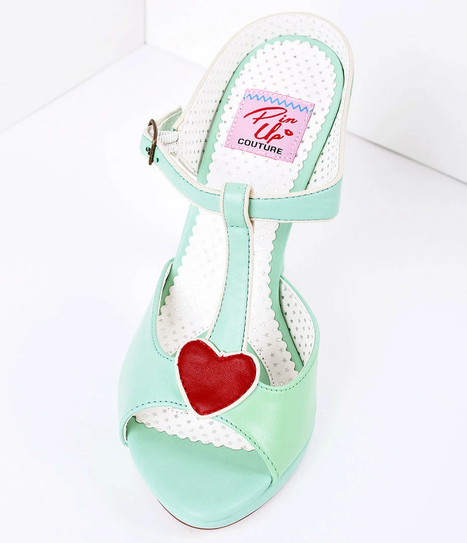 Pleaser Mint Faux Leather Heart Detail Sandal