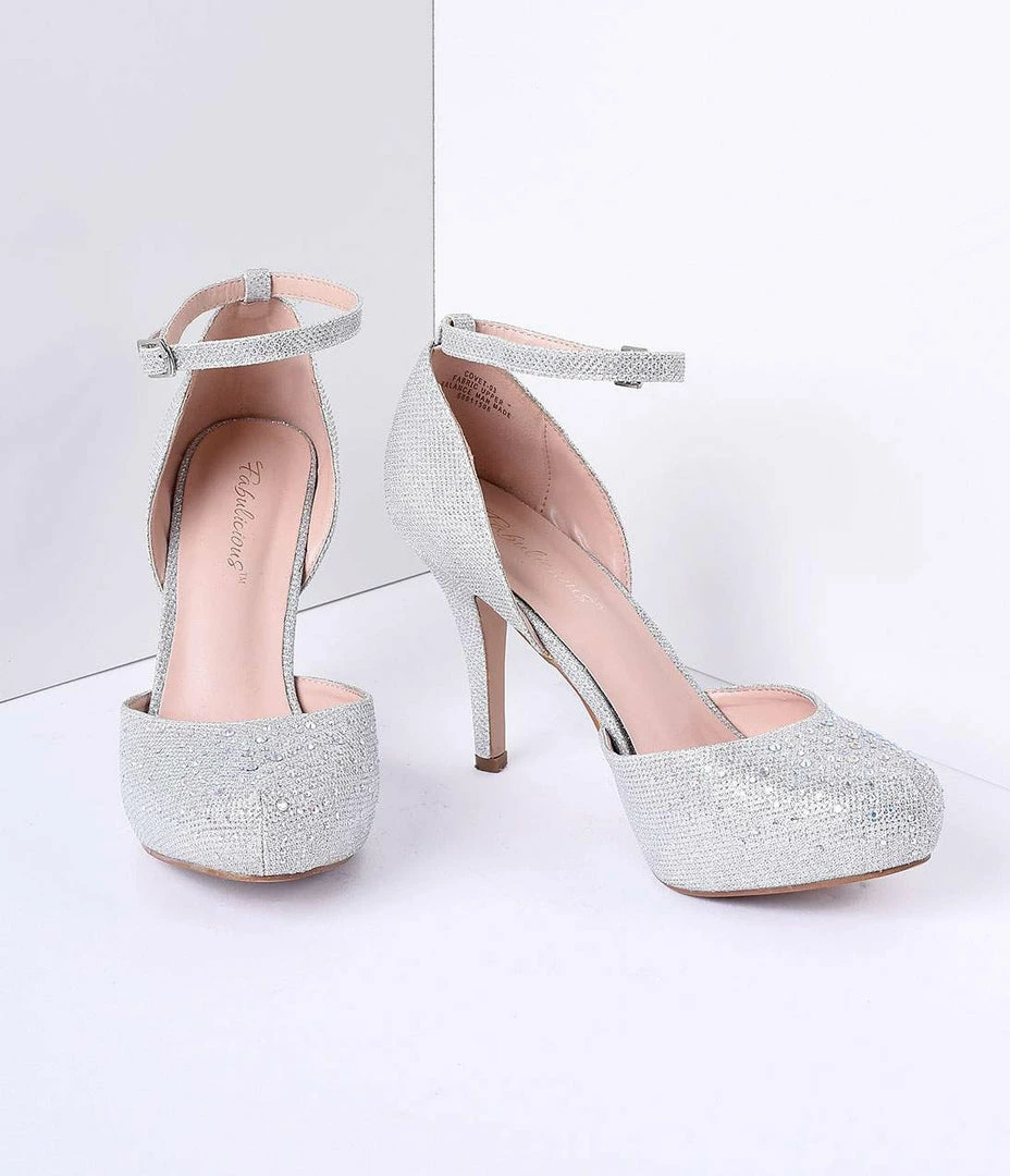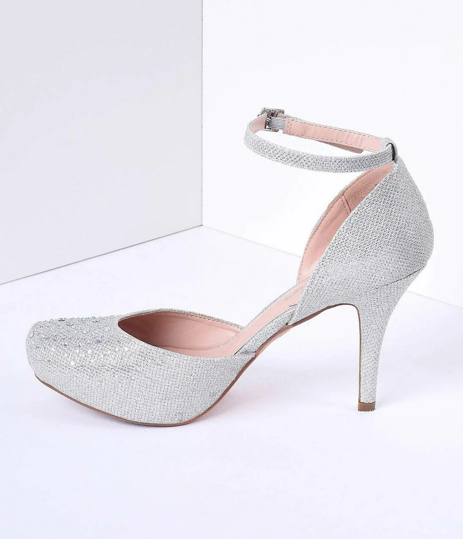 Try not to stare directly at them, gals! Sleek and enchanting in a fabulous shimmery rhinestoned silver, the Covet heels are a polished pair of pumps! This divine duo features a d’Orsay silhouette, slim gored and adjustable buckled ankle strap and cushion insole. Balanced on a 3.5 inch kitten heel with a .5 inch hidden platform, crafted in man-made materials.