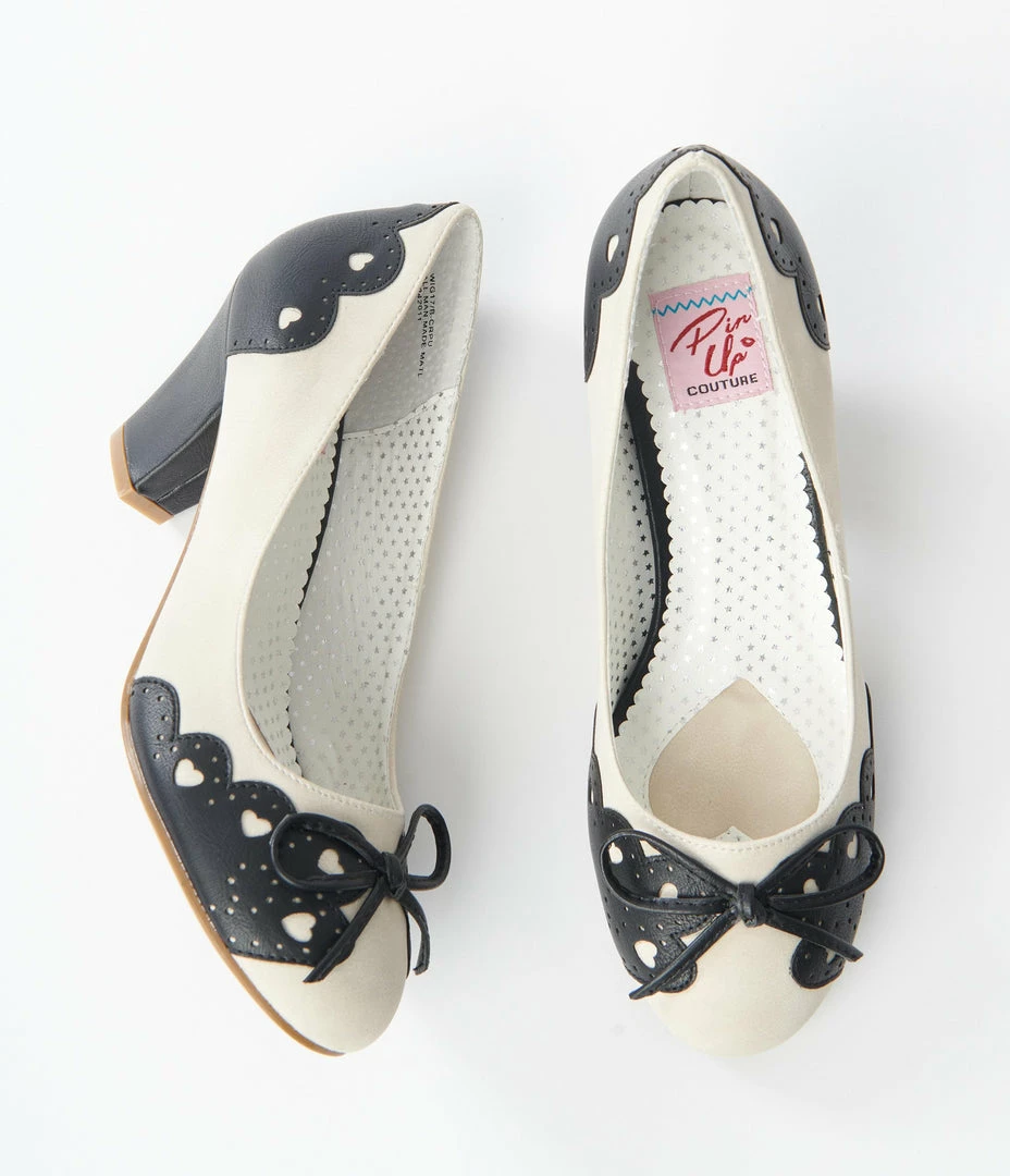 Pleaser Vintage Black & Cream Leatherette Saddle Pumps 1930s & 1940s