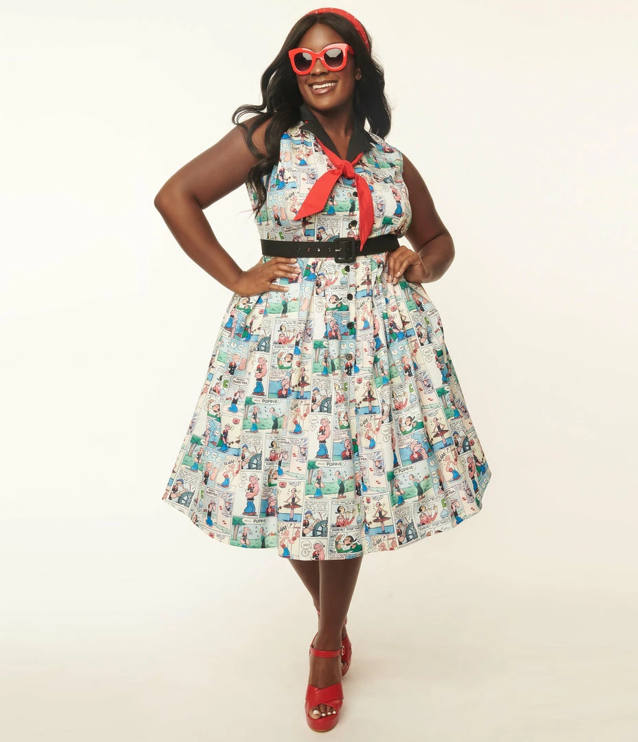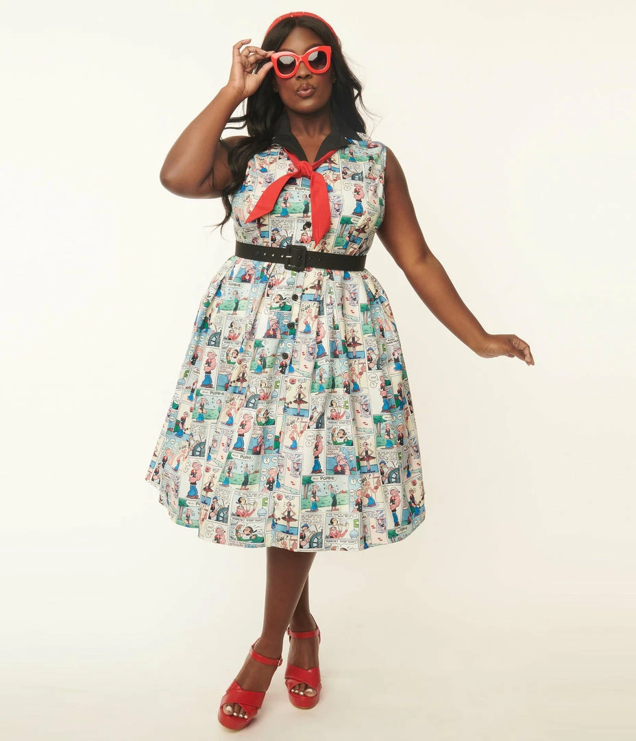Popeye X Unique Vintage Plus Size Classic Comic Print Swing Dress Dresses