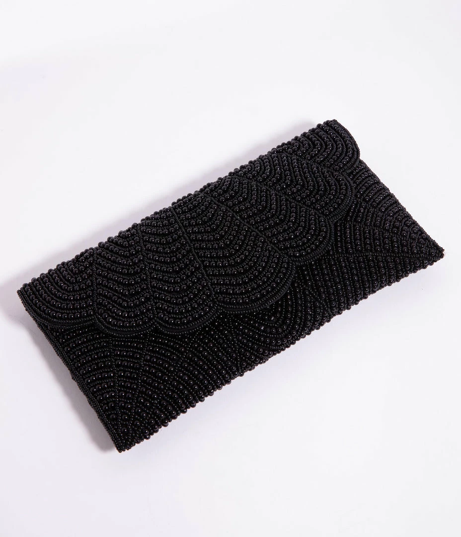 Ricki Designs Black Beaded Evening Envelope Clutch Flapper
